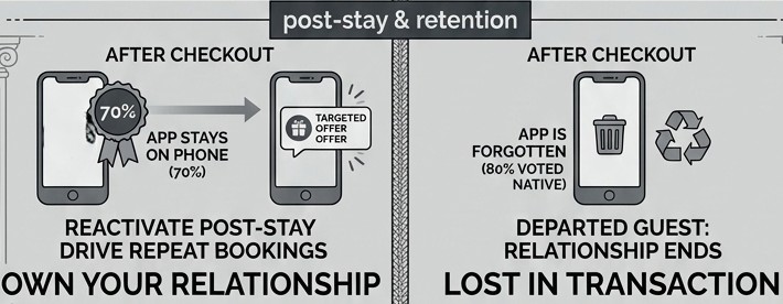 Here is the fact that changes the game. According to HandiGo analysis of 2025-2026 usages: 70% of guests do not uninstall the native app after they check out.
